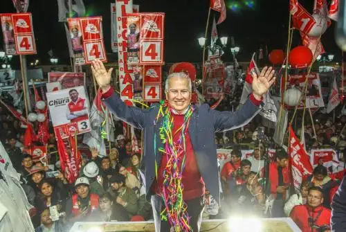 López Chau visitó hoy Azángaro e Ilave, donde realizó mítines de cierre de campaña. Previamente estuvo en el Cusco.
