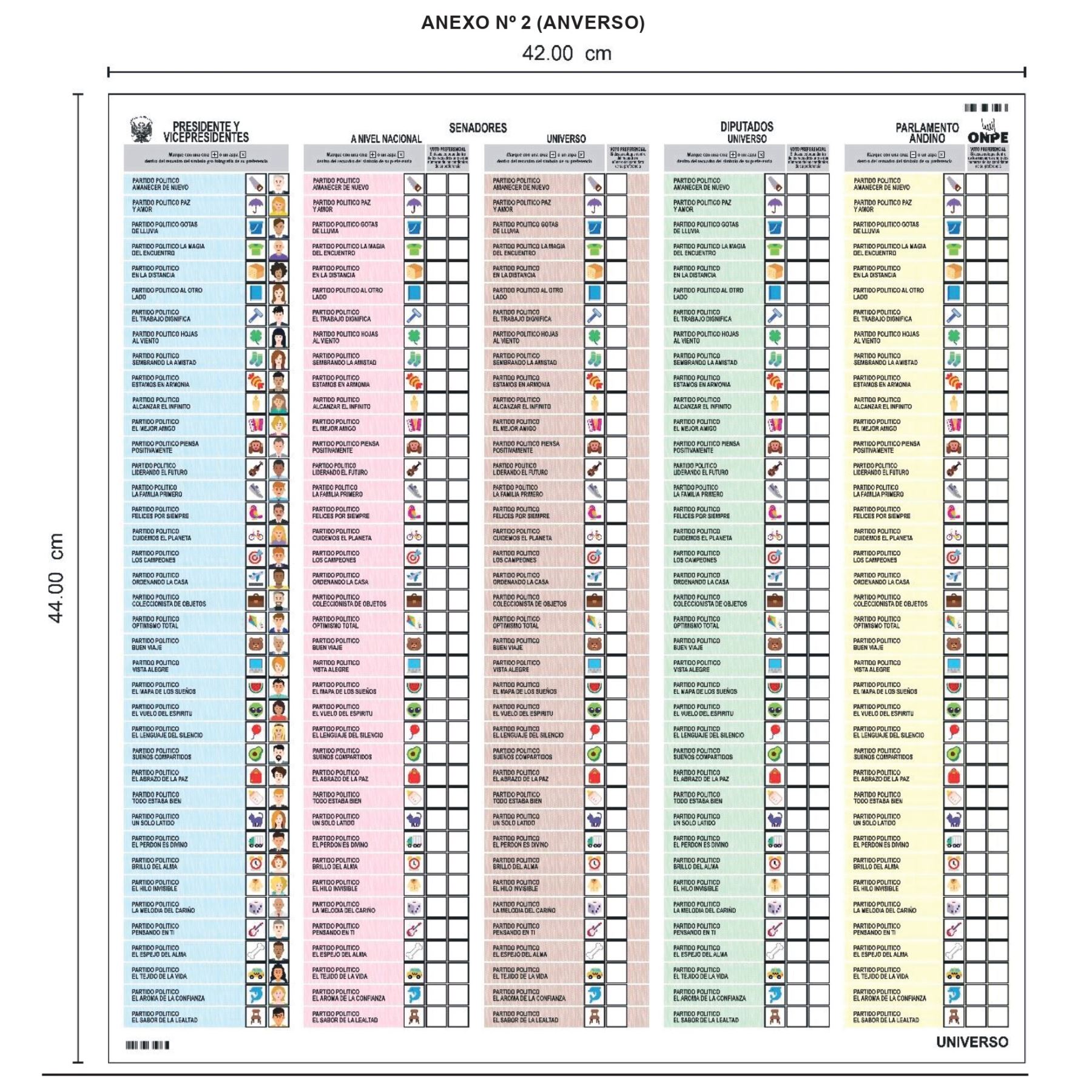 En caso de realizarse una segunda vuelta presidencial, la ONPE efectuará un nuevo sorteo solo entre las dos organizaciones políticas con mayor votación. El resultado definirá cuál se ubicará en el lado izquierdo y cuál en el lado derecho de la cédula de sufragio.