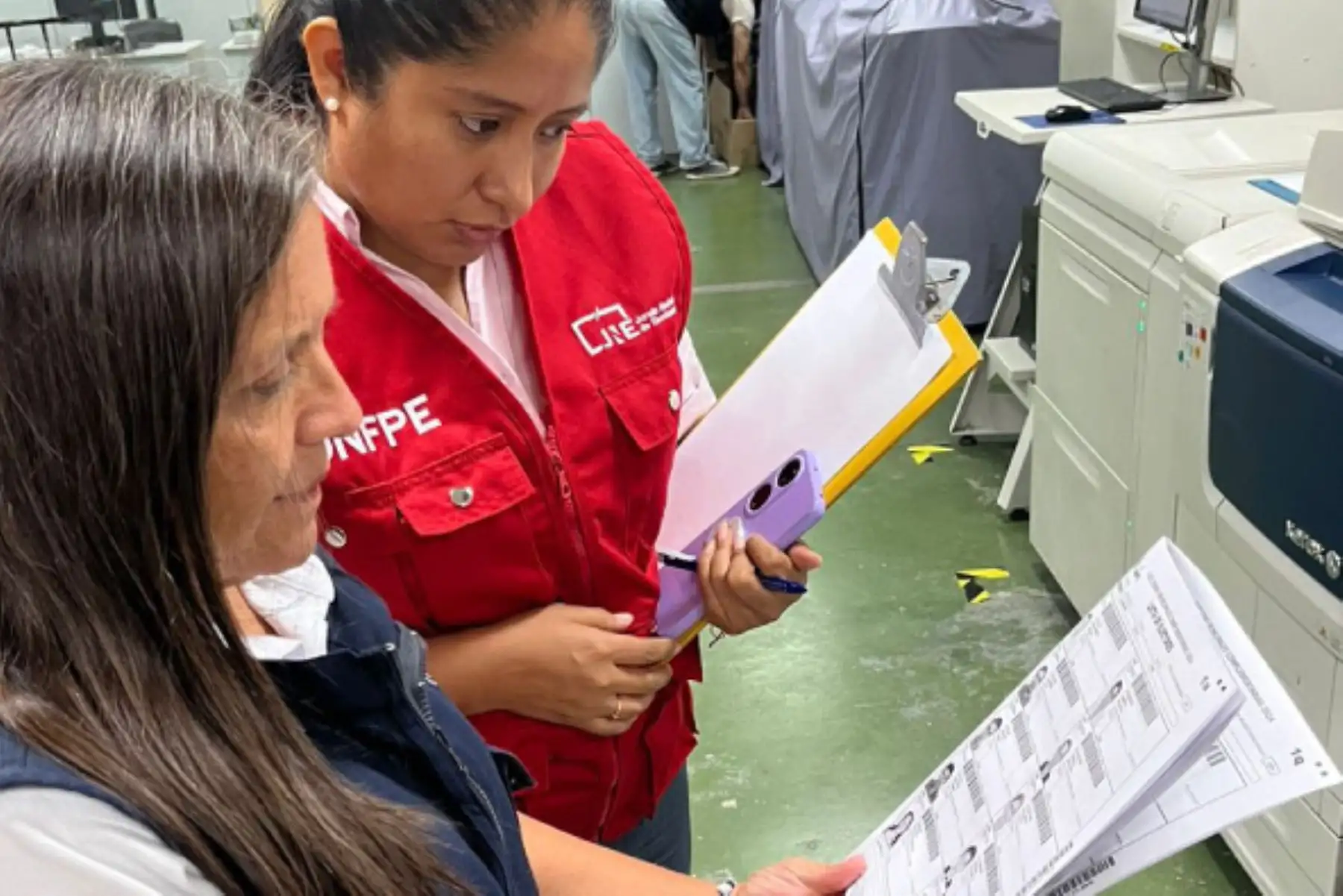 la ONPE inició la impresión del material electoral, luego de realizar pruebas públicas para presentar los diseños y colores de las cédulas de sufragio, actas padrón, carteles de candidatos y otros documentos que serán utilizados por los miembros de mesa.