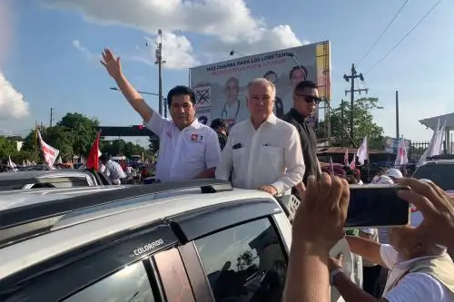 Como parte de su visita al Cusco, el candidato presidencial Alfonso López-Chau llegó hasta Quillabamba, donde realizó un recorrido por la ciudad acompañado de sus simpatizantes, dialogó con la ciudanía y realizó un mitin.