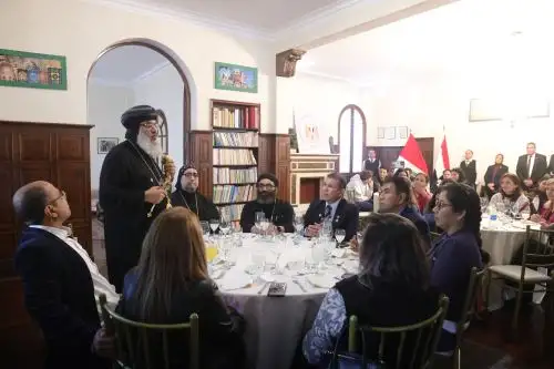 La Embajada de la República Árabe de Egipto en el Perú ofreció una recepción oficial en sus instalaciones en honor a la delegación de la Iglesia Copta Ortodoxa de Egipto, como muestra de bienvenida y gratitud por la noble labor que llevarán a cabo en el país.