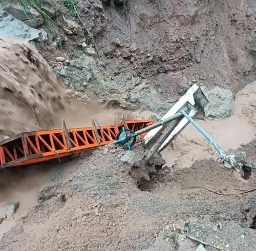 el caserío de Churumazú, el sector más golpeado por el huaico arrasó por completo con el puente peatonal y turístico de la zona, dejando a la población aislada, el