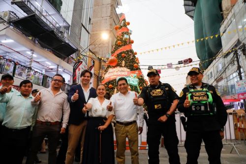 El ministro de la Producción, César Quispe Luján, acompañado de Oscar Arriola, Comandante General de la Policía Nacional del Perú; Hans Añaños, gerente general de Industrias San Miguel (ISM), y Susana Saldaña, presidenta de la Asociación de Empresarios de Gamarra – Perú, participó en el encendido de dos árboles navideños en el citado emporio comercial.
