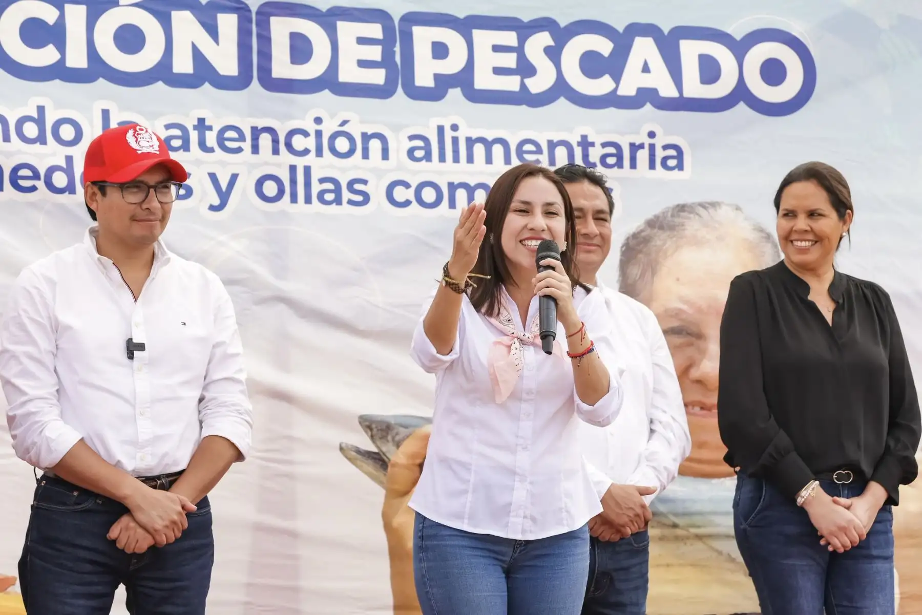 Como parte de esta iniciativa –en alianza con la Sociedad Nacional de Pesquería–, la ministra lideró una nueva entrega de 10 toneladas de producto hidrobiológico de alto valor proteico en San Juan de Lurigancho para apoyar la seguridad alimentaria y la reducción de los índices de anemia en el distrito.