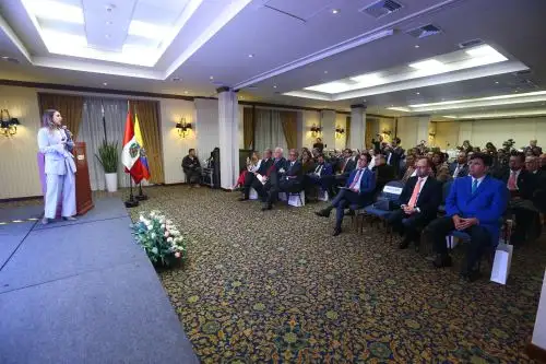 El evento que se desarrolla el marco del Encuentro Presidencial y XV Gabinete Binacional Perú – Ecuador cuenta con la presencia de la ministra de Producción, Comercio Exterior, Inversiones y Pesca del Ecuador, Sonsoles García, quien realizó la presentación de la política de inversiones el Nuevo Ecuador.
