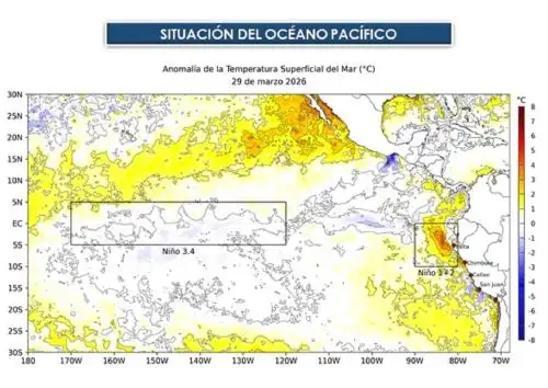 En cuanto al comportamiento del Pacífico ecuatorial central, Vásquez indicó que actualmente se mantiene en una condición neutra y que recién a partir de junio o julio evolucionaría hacia un evento cálido débil.