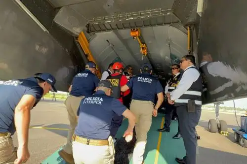 La nave, un avión Antonov de la Policía Nacional del Perú (PNP) arribó al terminal de la Fuerza Aérea del Perú de la Ciudad Blanca, alrededor de las 12:50 horas, para recargar combustible antes de continuar su viaje hacia la capital de la República.