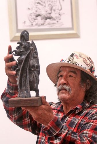 Incluso en esta muestra hay una serie en la que reinterpreta uno de los motivos más queridos por los amantes de la artesanía peruana: el torito de Pucará. Sin embargo, en esta ocasión lo hace en metal. Como curiosidad, reveló que no es afecto a la tauromaquia.