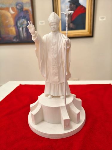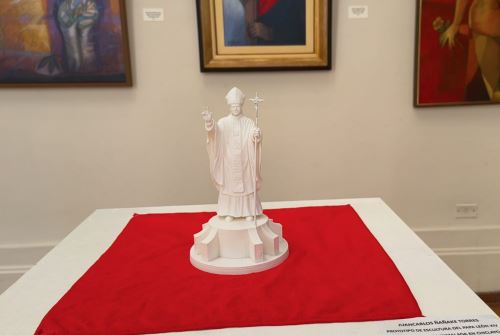 En el marco de las celebraciones por los 191 años de creación política de la provincia de Chiclayo, el arte local cobra especial protagonismo con una singular pieza que viene captando la atención del público: la escultura en miniatura del Papa León XIV, inspirada en la obra instalada en el ingreso sur de la ciudad, creación del artista chiclayano Juan Carlos Ñañaque.