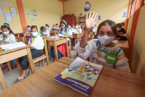 “Estoy muy emocionada de volver a ver a los estudiantes después de dos años, volver a clases era necesario porque la educación es un derecho y como docentes estamos en la obligación de retomar los aprendizajes en el aula en forma presencial”, dijo la profesora Aucahuallpa.