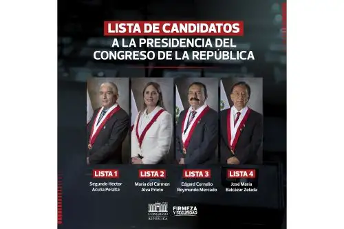 Al cumplirse el plazo límite para la presentación de candidaturas para la presidencia de la Mesa Directiva del Congreso (18:00 horas de hoy), cuatro parlamentarios fueron presentados por sus respectivos grupos parlamentarios como postulantes para presidir el Parlamento.