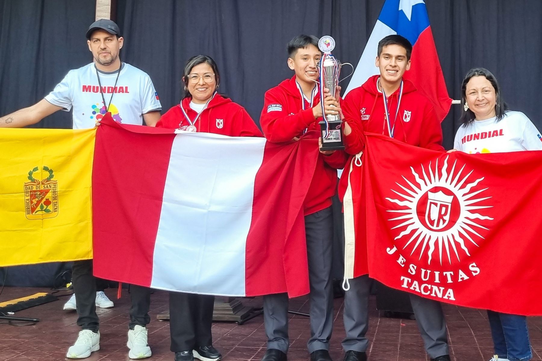 El primer lugar del Mundial Escolar de Ciencia y Tecnología 2025 se tiñó de rojo y blanco. Los estudiantes tacneños de la Institución Educativa Cristo Rey, Alejandro Aduvire Reyes y Tian Taya Joo, junto a su docente asesora Yolanda Apaza obtuvieron este importante logro en el evento internacional desarrollado en Valparaíso, Chile, entre el 13 y 19 de octubre.