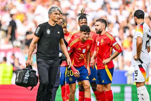 El español Pedro González 'Pedri', sustituido en el minuto 4 de los cuartos de final de la Eurocopa 2024 ante Alemania, sufre de un esguince lateral interno en su rodilla izquierda provocado por una entrada de Toni Kroos.