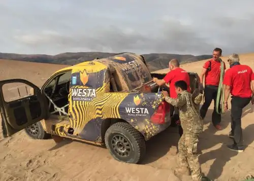 No obstante, después de varios intentos por sacar el vehículo atrapado, y al tomar conocimiento de las capacidades y profesionalismo de los pilotos de la Fuerza Aérea del Perú (FAP), Jordi Duran, Team Manager Toyota, solicitó apoyo al Estado peruano, a través del Ministerio de Defensa (Mindef).