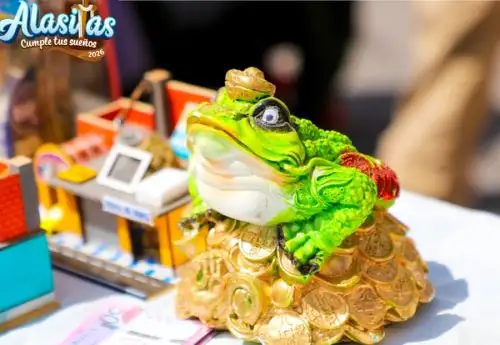 La Feria de Alasitas representa el anhelo de prosperidad y abundancia de quienes acuden a comprar miniaturas de casas, autos, dinero u otros artículos con la esperanza de que sus deseos de obtener esos bienes se hagan realidad.
