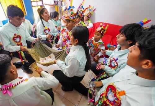 Con sus coloridos atuendos, los danzantes escucharon la eucaristía antes de iniciar su recorrido por las viviendas de las familias iqueñas.