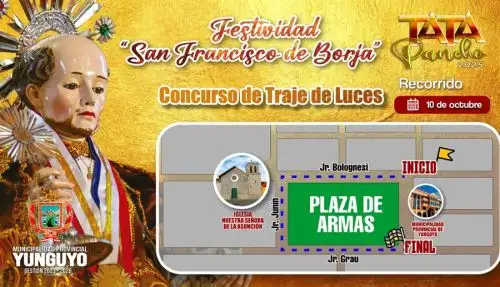 Los preparativos de la Fiesta en honor de San Francisco de Borja empiezan con varias semanas de anticipación y se caracterizan por su sincretismo andino-cristiano en el que destacan una solemne misa celebrada el 10 de octubre, seguida de una multitudinaria procesión que recorre las principales avenidas, calles y jirones de la ciudad de Yunguyo, en la que participan autoridades civiles y religiosas, así como numerosos devotos procedentes de diversas provincias de Puno y de otras regiones del país.