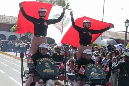 Luego llegó el turno de la Policía Nacional, que estuvo encabezada por la Banda de Música Santa Rosa de Lima, que precedieron el paso de las diversas unidades policiales en la región Ayacucho.