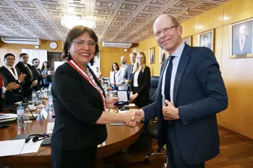 La Fiscal de la Nación, Delia Espinoza Valenzuela, sostuvo una reunión de trabajo con los representantes del Reino de los Países Bajos con la finalidad de abordar las estrategias para enfrentar el crimen organizado internacional y el tráfico ilícito de drogas.