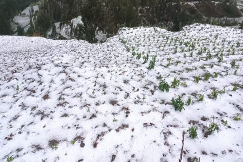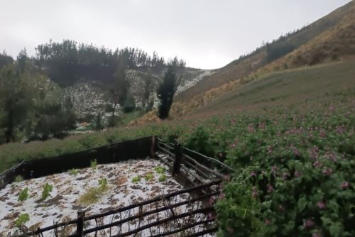 En la comunidad de Choccancha, distrito de San Miguel, provincia de La Mar, la lluvia acompañada de granizada, cayó alrededor de las 4:30 p.m., cubriendo de hielo los campos y ocasionando la pérdida total de las plantaciones.