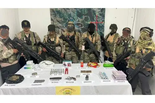 Como resultado del operativo, se halló dentro de las mochilas un revólver calibre 0.38, una granada tipo piña, 11 faneles de 1800 metros, dos faneles de 800 metros, un explosivo booster de 450 gramos, 799 cartuchos de 7.62 mm eslabonado, 411 cartuchos de 5.56 mm, 38 cartuchos dinamita y siete emulsiones.