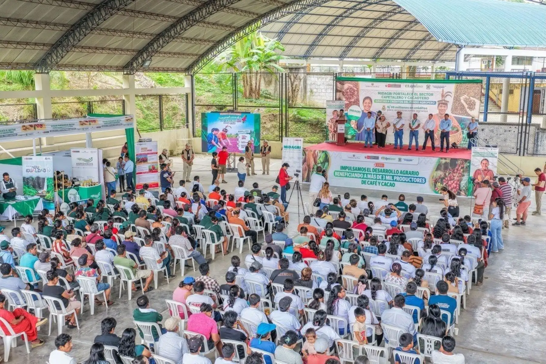 “Hoy el Gobierno, a través del Midagri, entrega créditos para respaldar el esfuerzo de muchas familias agricultoras que trabajan día a día en el campo y que apuestan por organizarse y salir adelante, impulsando las cadenas productivas de café y cacao”, expresó.