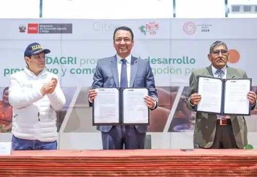 El Ministerio de Desarrollo Agrario y Riego (Midagri) y el Centro Industrial Tecnológico del Emprendimiento de Algodón Perú (CITE) suscribieron un convenio interinstitucional para unir esfuerzos a fin de impulsar la cadena productiva del algodón textil que se cultiva en el Perú.