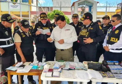 Durante la requisa, se encontró una gran cantidad de libretas con números telefónicos, las cuales, según informó el titular del Mininter, estarían vinculadas a presuntos actos de extorsión perpetrados desde el interior del establecimiento penitenciario.