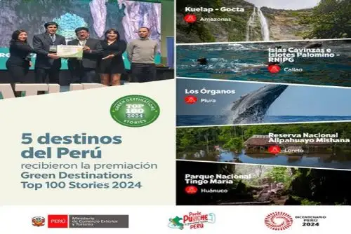 Cuatro destinos peruanos ubicados en la costa, sierra y selva han sido galardonados mundialmente este 2025 con los Top 100 Green Destinations Stories. ¿En qué consiste y por qué es notable esta competencia y distinción global y qué destinos turísticos peruanos han sido reconocidos hasta ahora?