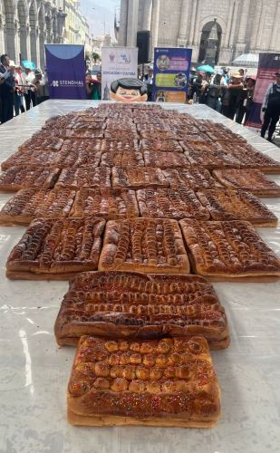 Unas 2,300 porciones de guagua se distribuyeron en la Plaza de Armas de Arequipa, luego del tradicional bautizo de guagua, que este año su tamaño alcanzó los ocho metros de largo por tres de ancho.