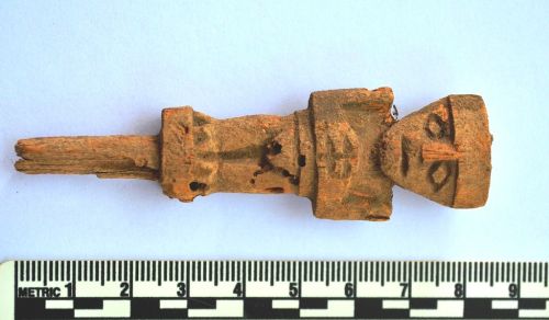 Entre lo hallado en la excavación destaca una pequeña escultura tallada en madera que representa a una mujer, que mide aproximadamente 8.5 cm; y un fragmento rectangular de paño de algodón con aplicación de plumas polícromas, el cual mide 54 cm. de largo y 10 cm. de ancho.