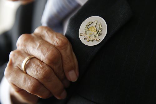 Sobre el saco reluce el pin que le dio en el 2017 el Ejército Peruano por su desinteresada labor patriótica. Lo lleva siempre. El desaparecido compositor Manuel Acosta Ojeda, conocedor de su amor por el Perú, lo rebautizó como “Loco por el Perú”.