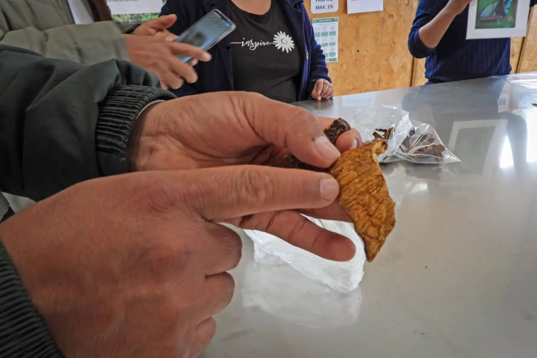 En un paciente trabajo de campo, el ingeniero Villa explicó el “paso a paso”: desde la cosecha hasta el secado final, con énfasis en la seguridad sanitaria del producto, la calidad y su valor comercial.