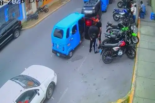 En el video se observa a la víctima, identificada por el Ministerio Público de Huacho como Juan Pedro Gutiérrez Quijano, de 35 años. El hombre conversa de manera tranquila con otro conductor de una mototaxi color azul, como si fueran conocidos y hasta amigos.