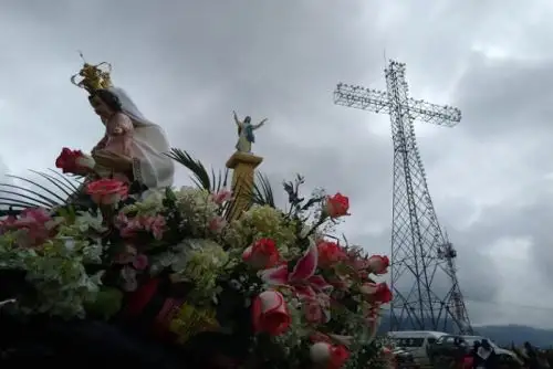 Durante el ascenso al cerro Achkamarca, los integrantes de las diferentes parroquias rezaron bajo una leve llovizna, y también escenificaron las 14 estaciones del vía crucis que recorrió Jesucrito; al final se realizó una misa al pie de la Cruz de la Paz.