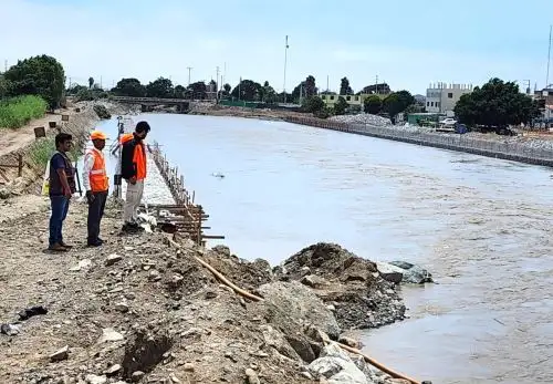 Frente a esta situación, la Gerencia de Gestión del Riesgo de Desastres del Gobierno Regional de Áncash realizó una inspección técnica en coordinación con la Municipalidad Provincial de Huarmey. Durante la supervisión se verificó la ejecución de obras de defensa ribereña a cargo de la empresa OHLA, como muros de contención y enrocados; sin embargo, se identificaron puntos críticos donde los muros de gaviones aún se encuentran en proceso de construcción, lo que podría representar vulnerabilidad ante una eventual crecida mayor.