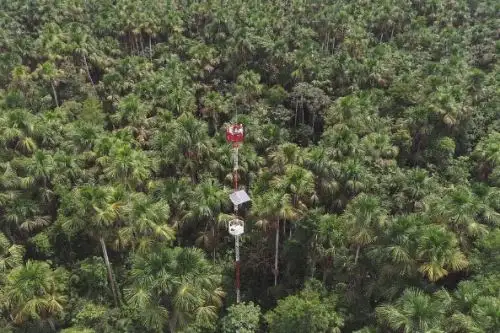 En la Amazonía peruana, específicamente en el departamento de Loreto, los datos se obtuvieron de una turbera de aguajal cerca de Iquitos; la infraestructura ha permitido registrar el intercambio de gases entre el suelo, la vegetación y la atmósfera. Esta zona, operada por el Instituto de Investigaciones de la Amazonía Peruana, se encuentra en los bosques inundables de Quistococha.