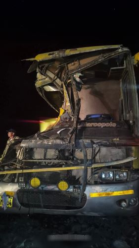 A la altura del kilómetro 406 de dicha vía, en la provincia de Palpa, del departamento de Ica, un bus de la empresa de transportes 'Cueva' que llevaba mercadería, colisionó con un camión cisterna que llevaba brea.