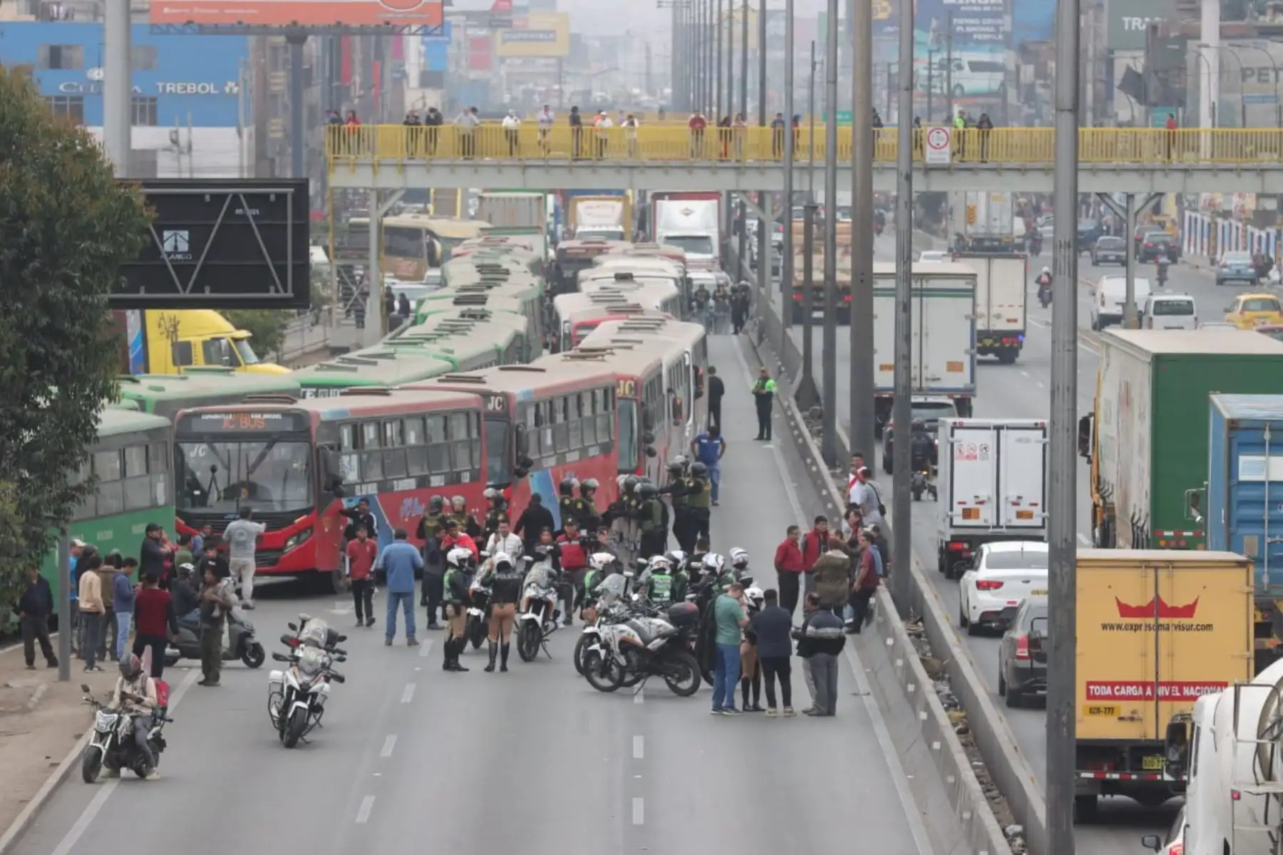 Mientras tanto, buses de diferentes empresas de transporte se mantenían estacionados en plena Panamericana Norte, a la altura del óvalo Habich, en el distrito de San Martín de Porres, de norte a sur, en su propósito de ir en caravana hasta el Congreso de la República.