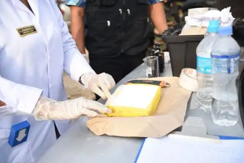 Al realizar las diligencias de identificación preliminar (prueba de campo) con el respectivo reactivo químico, arrojó resultado “positivo”, para Alcaloide Cocaína, con un Peso Bruto Total (PBT) aproximado de 41.091 Kg.
