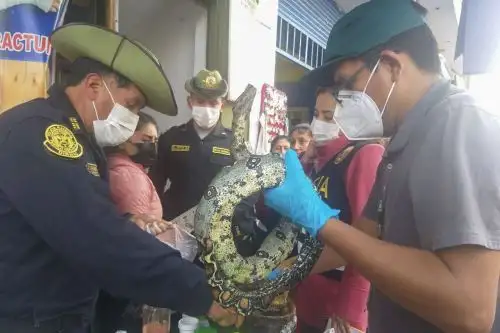 El Servicio Nacional Forestal y de Fauna Silvestre (Serfor), del Ministerio de Desarrollo Agrario y Riego, incautó más de 40 piezas o partes de animales silvestres como cabezas, pieles, patas, caparazones de reptiles lagartos, boas y tortugas disecadas, las cuales eran ofrecidas en puestos ambulatorios de la avenida Aviación, en el distrito de La Victoria.