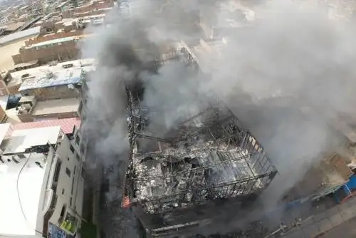 Un total de seis personas (tres civiles y tres bomberos) fueron afectados a consecuencia de un gran incendio que se registró esta tarde en un edificio ubicado en la cuadra nueve de la avenida César Vallejo, en el corazón de la ciudad de Trujillo, región La Libertad.