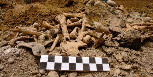 El barrio de San Martín fue escenario del hallazgo, que correspondería a tumbas de la cultura Wanka. Se han registrado fragmentos de cerámica, artefactos líticos, percutores, rompeterrones y huesos que corresponderían a tres adultos y un niño.
