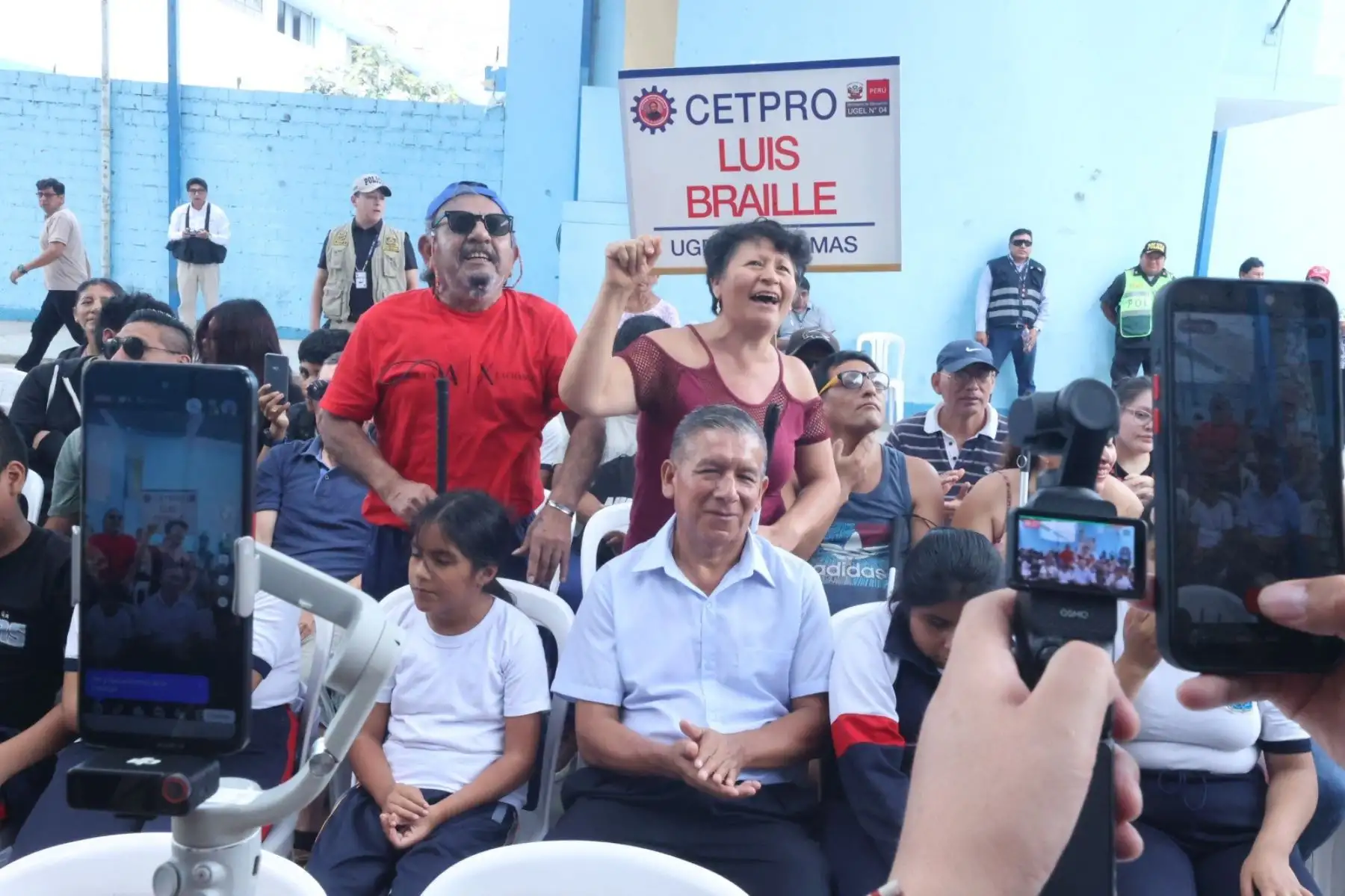 En la ceremonia estuvieron presentes la directora del centro educativo, Soledad Valverde; la directora de la UGEL 04, Nelly Rufina Cunza; el directivo de la empresa Cálidda, Giancarlo Guardia; y el director ejecutivo del FISE, Francisco Torres Madrid, así como estudiantes y personal docente.