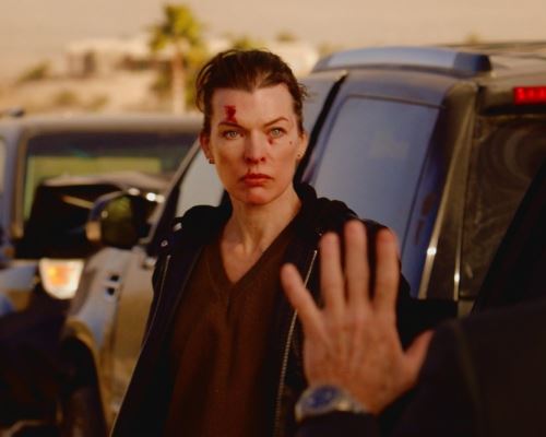 escena. En este contexto, Jovovich ofrece una interpretación más contenida pero igual de contundente, alejándose del heroísmo tradicional para dar paso a un personaje marcado por la desesperación y la determinación.