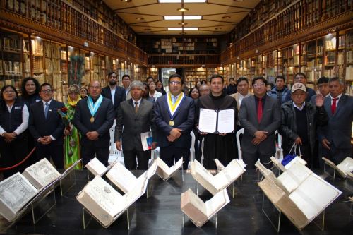 La ceremonia protocolar se realizó este jueves 23 de abril en el propio convento, con la presencia del párroco fray José Iván Torres Mundaca, autoridades franciscanas y el jefe institucional de la BNP, Juan Yangali Quintanilla, quien llegó acompañado de un equipo técnico como parte de la Gran Caravana Regional de la Lectura, iniciativa que recorre siete provincias en cinco regiones del país para acercar el libro y la lectura a territorios históricamente desatendidos.