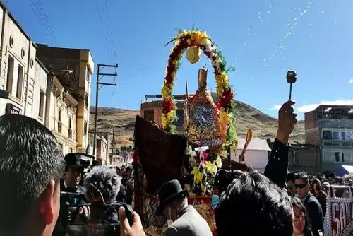 Seguidamente la sagrada imagen fue bajada desde el cerro Patamarca, en medio de bailes de las cuadrillas y devotos. Una vez en la plaza principal los fieles se deleitan con demostraciones artísticas, puntualizó el burgomaestre.