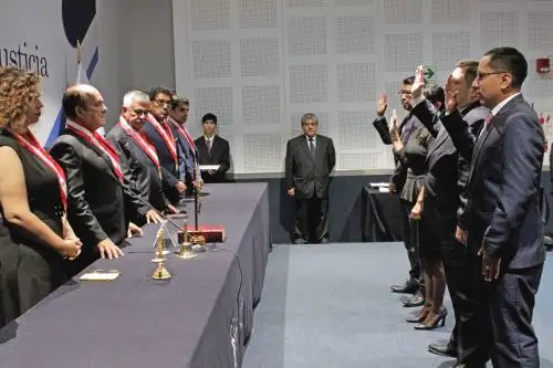 El presidente de la Junta Nacional de Justicia, Gino Ríos Patio, tomó juramento hoy a 29 magistrados de diversas instancias y especialidades, a escala nacional, con lo cual se contribuye a la reducción de la provisionalidad en el sistema judicial.