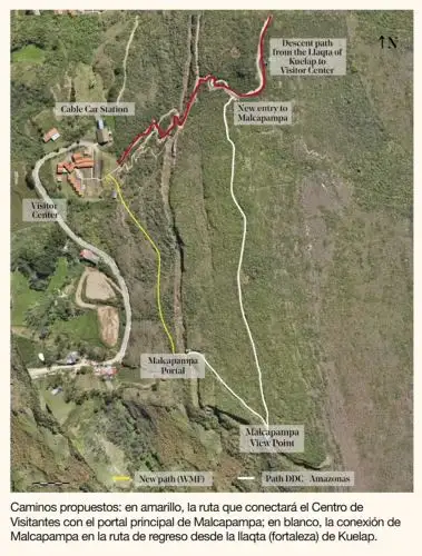 Explicó que al culminar su visita a la fortaleza de Kuélap, los visitantes podrán tomar otro sendero que los llevará, cruzando el sector de Malcapampa, hasta un mirador que tiene una vista impresionante. Luego atravesarán la Portada de Malcapampa para dirigirse al Centro de Visitantes.