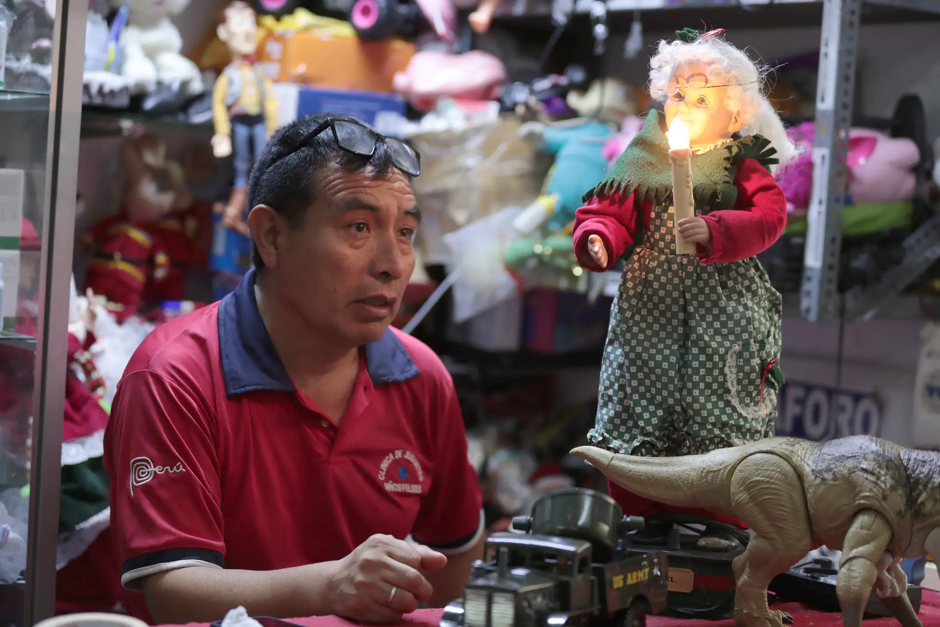 La mayor afluencia de “pacientes” llega en noviembre y diciembre, durante la campaña navideña, cuando carros, nacimientos, muñecos y juguetes electrónicos llenan la repisa de su consultorio en el jirón Cusco 640, ubicada en el cuarto piso de la galería Mercado Central, puesto 4265.
